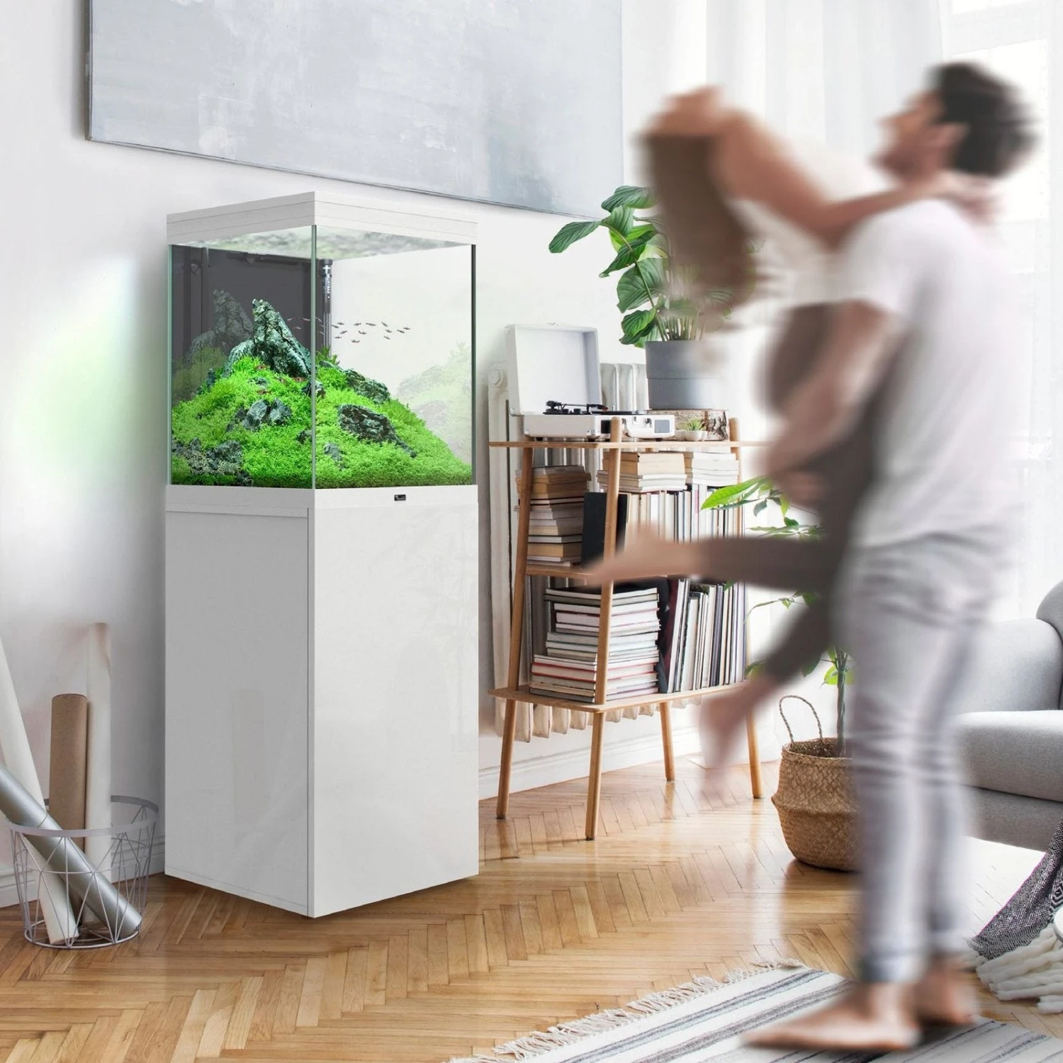 L’Aquarium Aqua Tower 163 AQUATLANTIS contient un maximum d’eau pour un minimum de place ! Sa hauteur intéressante de 65,4 cm permet la création de grands décors et ravira les passionnés d’aquascaping.