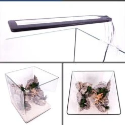 Dimensions : 60 x 50 x 45 cm Épaisseur du verre : 8 mm Capacité : 125 L Silicone : Noir Matériau en verre : Verre ultra-clair Starphire de haute qualité qui assure une transparence incomparable avec une transmission à 91 % ! Chaque Aquarium WATERBOX porte une gravure au laser à l’intérieur de la cuve afin d’en garantir l’authenticité.