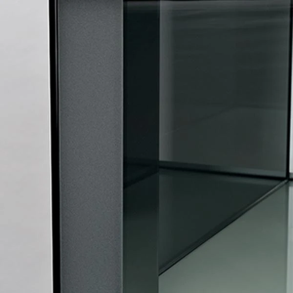 L’éclairage d’ambiance multicolore dans le meuble contrôlable par télécommande ainsi que les capots coulissants en verre noir offrent une utilisation simple et pratique.