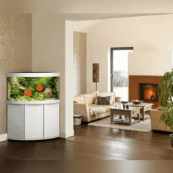 Grâce à son design séduisant avec un effet de relief, l’Aquarium Trigon 190 LED de JUWEL s’adapte avec harmonie et douceur dans n’importe quel angle de pièce, créant un pôle de calme pour toute la famille.