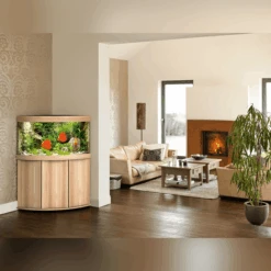 Grâce à son design séduisant avec un effet de relief, l’Aquarium Trigon 190 LED de JUWEL s’adapte avec harmonie et douceur dans n’importe quel angle de pièce, créant un pôle de calme pour toute la famille.