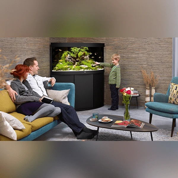 Grâce à son design séduisant avec un effet de relief, l’Aquarium Trigon 350 LED de JUWEL s’intègre harmonieusement et en douceur dans n’importe quel angle de pièce, créant un pôle de calme pour toute la famille.