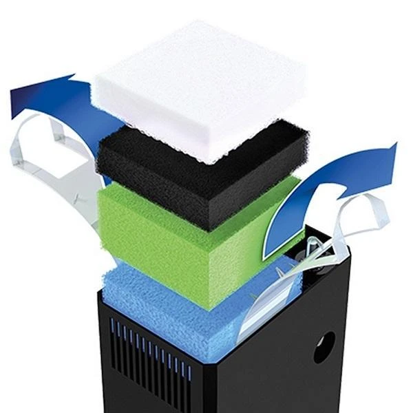 Le filtre Bioflow 3.0 et sa pompe à eau Eccoflow de 600 L/h assurent une filtration efficace et optimale de l’eau de l’aquarium. Ce filtre est composé de cinq masses filtrantes mécaniques et biologiques : ouate filtrante 3.0, éponge charbon 3.0, nitrax 3.0, mousses filtrantes grosses 3.0, 2 x mousses filtrantes fines 3.0.