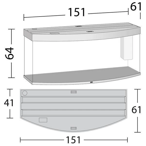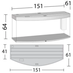 | Modèle : Vision 450 LED JUWEL Dimensions : L151 x P61 x H64 cm Capacité : 450 L Poids : 85 kg |