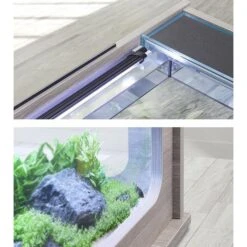 L’accès à l’intérieur du bac est facilité grâce au couvercle supérieur coulissant de l’aquarium, qui donne deux accès différents, pour l’installation et l’entretien.