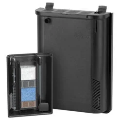 | Modèle : BioBox 2 Pompe : EasyFlux 900 Dimensions : (L) 28 x (l) 9 x (H) 36,4 cm Cartouches filtrantes :