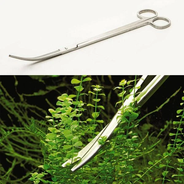 Curved Scissors de AQUAEL est une paire de ciseaux angulaires spécialement conçue pour la taille professionnelle des plantes gazonnantes, et pour l’aménagement de paysages en aquarium : l’aquascaping.