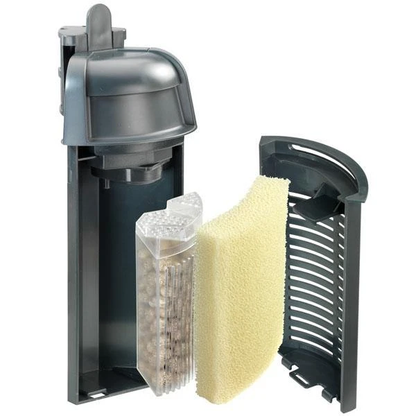 L’AquaCorner a été développé spécialement pour les petits aquariums et nano aquariums. Parce que c’est un filtre de coin, il prend peu de place dans l’aquarium. Il s’accroche simplement au verre. Il se fixe si près du verre qu’aucun animal ne peut être piégé derrière. De plus, son aspiration est réglée de sorte que les petits habitants du bac (par exemple les crevettes ou petits poissons) ne soient pas aspirés. L’AquaCorner peut facilement être ouvert. Dans le haut, il y a un pré-filtre – derrière lui une mediabox. Il est entièrement équipé de supports filtrants EHEIM.