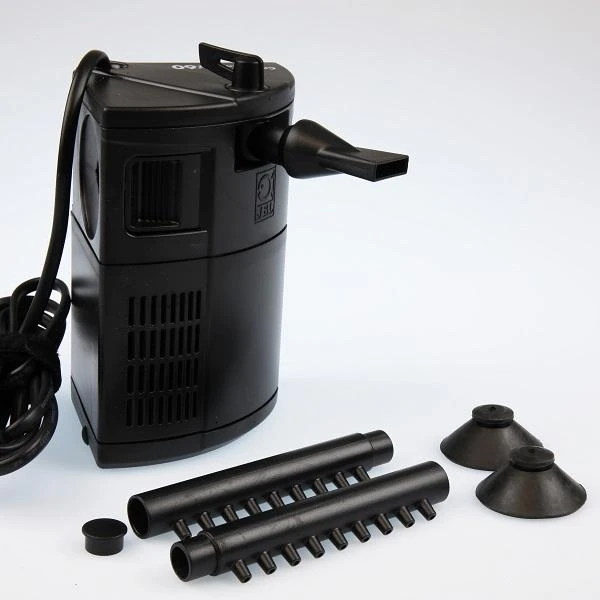 - Structure modulaire : extensible, sortie d’eau rotative à 90°, grand volume filtrant, ventouse avec mécanisme de détachement, vidange du filtre : pas d’eau usée dans l’aquarium, utilisation de toutes les masses filtrantes, élégante forme d’angle.