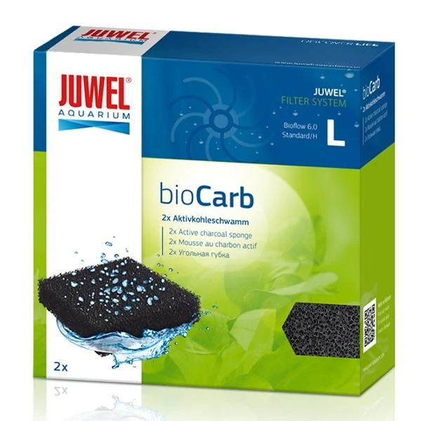 BioCarb de JUWEL est un lot de 2 blocs de mousses au charbon actif, qui absorbent les matières odorantes et les agents de turbidité, ainsi que les combinaisons toxiques en suspension dans votre aquarium, pour laisser une eau cristalline.