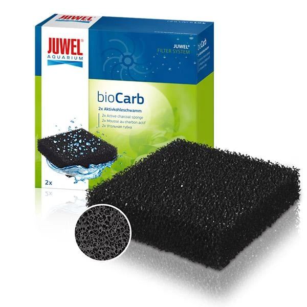 BioCarb de JUWEL est un lot de 2 blocs de mousses au charbon actif, qui absorbent les matières odorantes et les agents de turbidité, ainsi que les combinaisons toxiques en suspension dans votre aquarium, pour laisser une eau cristalline.