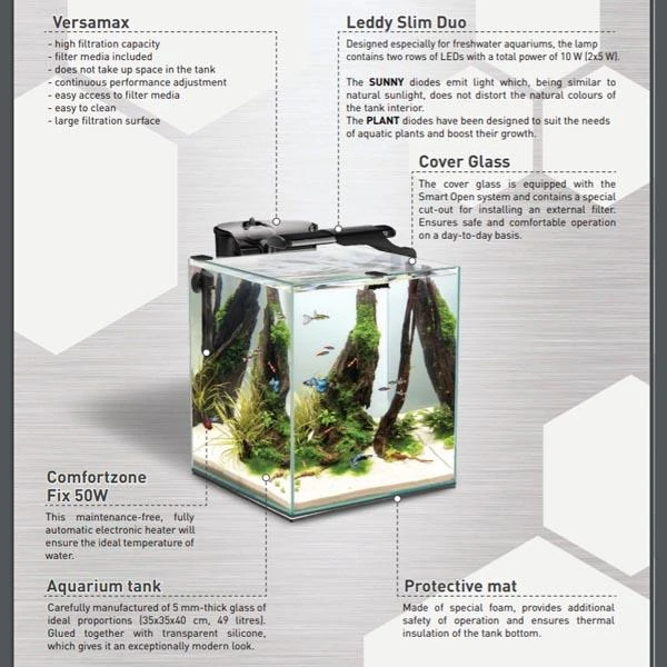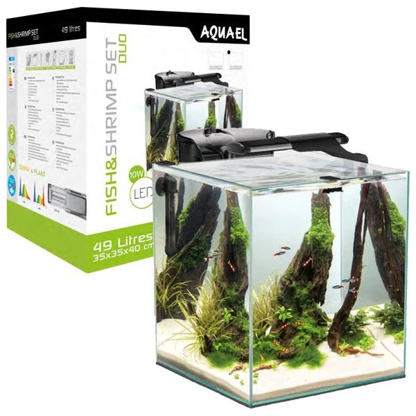 Le Fish & Shrimp Set Duo 35 AQUAEL vous séduira avec son design cubique ! Il est un excellent choix pour maintenir des crevettes, betta ou autres petits poissons d’eau douce. Sa maintenance est très facile et ne nécessite pas beaucoup d’entretien. Cet ensemble est vraiment parfait si vous recherchez un nano-aquarium prêt à l’emploi et très bien équipé.