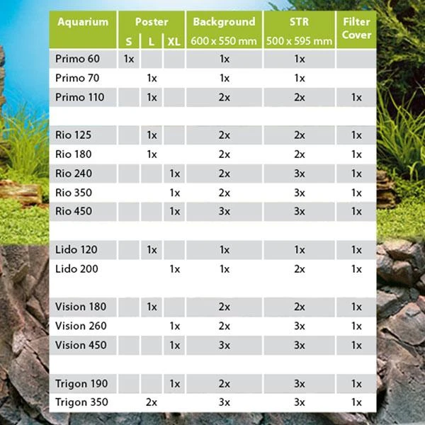 Les posters JUWEL offrent une solution facile et efficace de personnaliser la paroi arrière de votre aquarium. Ils sont imprimés sur les deux faces avec un paysage différent.