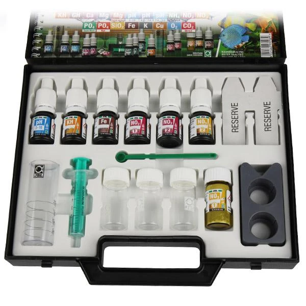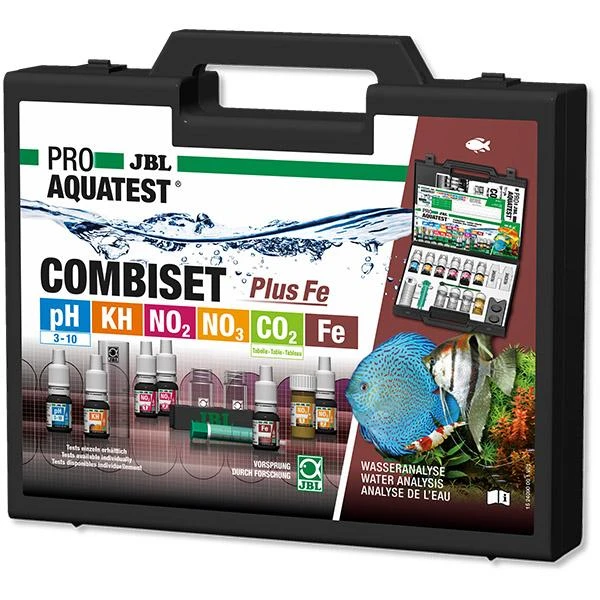 Pro AquaTest CombiSet Plus Fe de JBL est un coffret de test pour un contrôle simple et sûr des paramètres d’eau en aquarium d’eau douce. Il détermine les paramètres suivants :