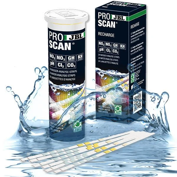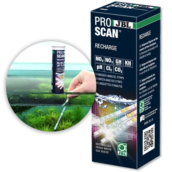 ProScan Recharge JBL se compose de 24 bandelettes-tests pour une utilisation avec le kit de tests photométriques ProScan JBL : une analyse et un diagnostic de l’eau faciles et sûrs par Smartphone ! ProScan détermine :