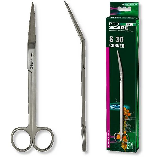 ProScape S 30 Curved de JBL est une paire de ciseaux angulaires spécialement conçue pour la taille professionnelle des plantes, pour l’aménagement de paysages en aquarium : l’aquascaping.