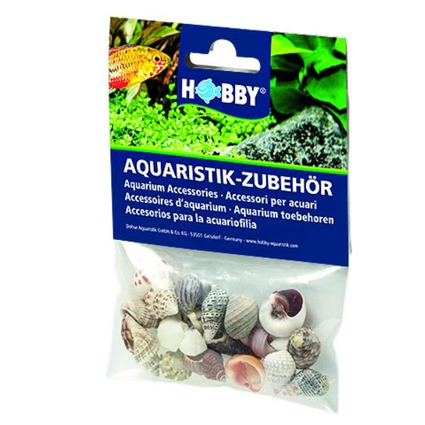 Sea Shells Set S de HOBBY est un lot de 20 coquilles d’escargots naturelles, idéal pour servir de refuge pour Bernard-l’Hermite en aquarium marin et autres animaux de ce type.