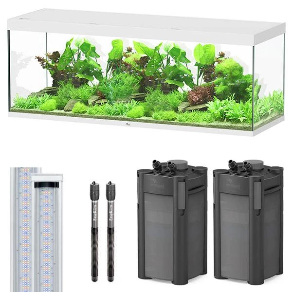 Sublime 200 x 70 AQUATLANTIS est idéal pour les grands décors avec sa capacité de 853 L et son coloris moderne blanc laqué.