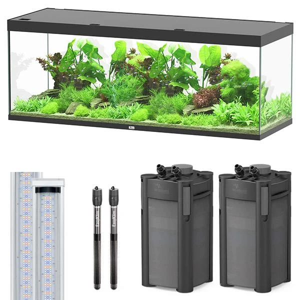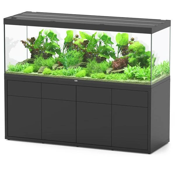 Sublime 200 x 70 AQUATLANTIS est idéal pour les grands décors avec sa capacité de 853 L et son coloris moderne noir laqué.