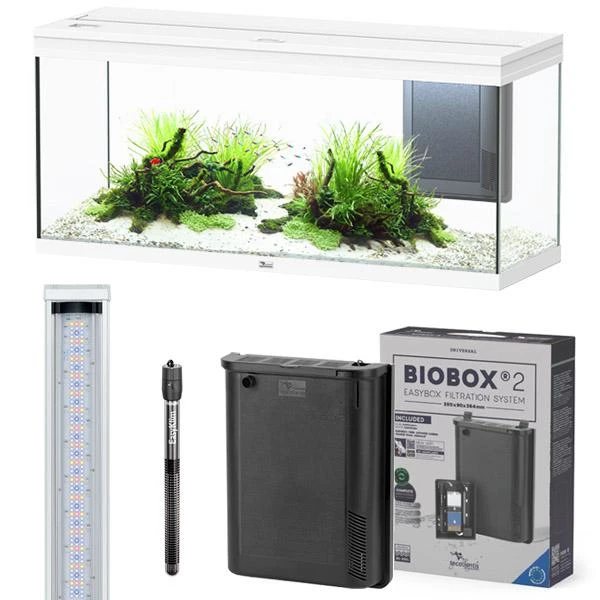 Modèle : BioBox 2 Pompe : EasyFlux 900 Dimensions : (L) 28 x (l) 9 x (H) 36,4 cm Cartouches filtrantes :